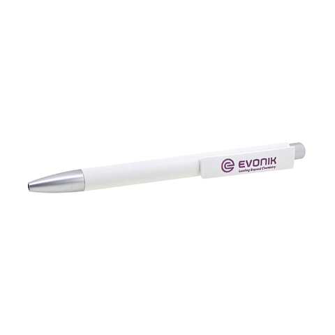 The notebook comes with a ballpoint-pen slotted in behind the book spine.