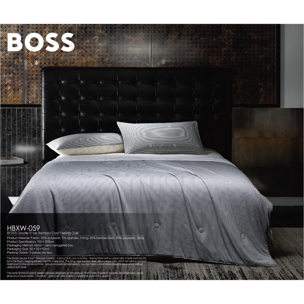 The BOSS Double B Ice - Bamboo Cool-Feeling Quilt uses a cool-feeling fabric with a unique ratio. It feels cool but not icy to the touch, keeping the skin cool for a long time. The filling uses bamboo fiber with a unique ratio, which can give a cool and moist touch to the skin in summer. With its exquisite printed pattern, you can have a comfortable sleeping experience without using a quilt cover.