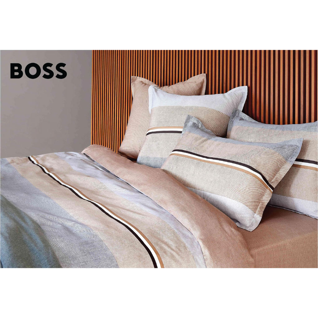 The entire product is made with high-thread-count, high-density, luxury satin fabric, with 100-thread count double-ply yarn, providing a delicate feel and offering a comfortable sleep experience. The BOSS brand's signature camel, white and black satin ribbons decorate the entire product, with a textured background and beige and grey tones, presenting a young and fashionable style.